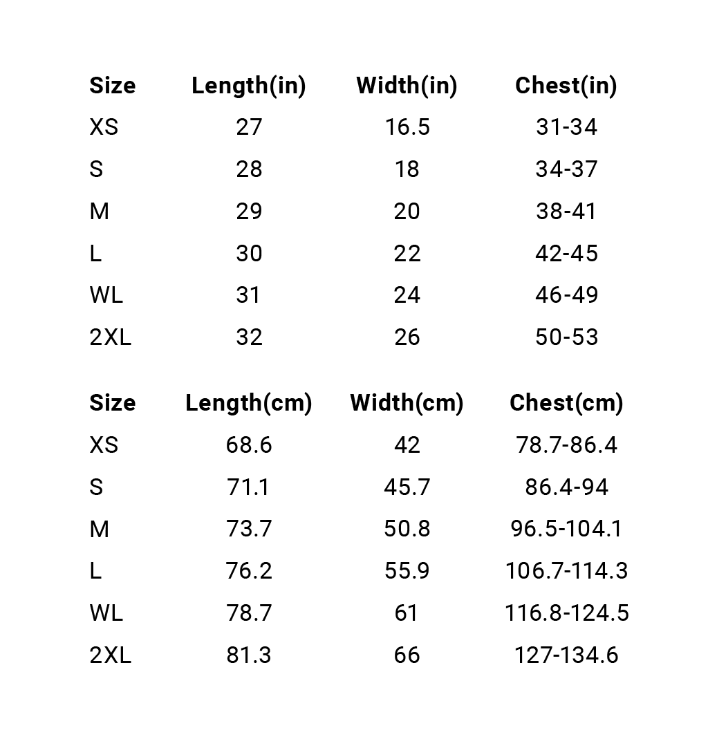Shirt Size Chart